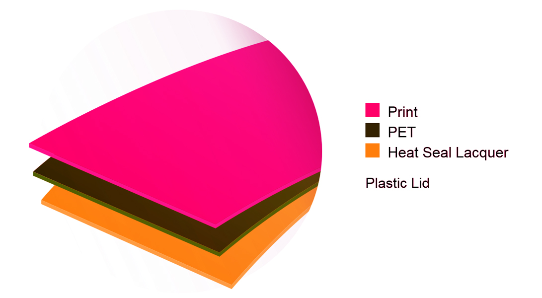 Plastic Lid The PET/BOPP die cut lid market standard. Available as embossed or unembossed version as white or metallized film. Sealing against PP, PS and A-Pet